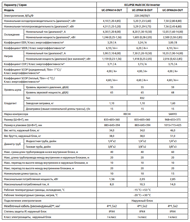 Серия наружных блоков ECLIPSE MULTI DC EU Inverter состоит из 3 моделей: