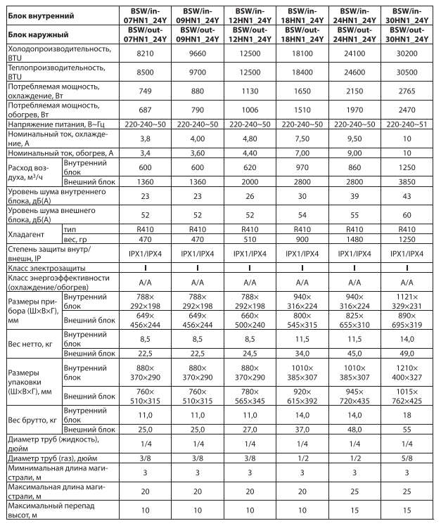 В серию входит 5 моделей разной мощности, что позволяет легко подобрать сплит-систему, которая оптимально подойдет для вашего помещения и условий эксплуатации: