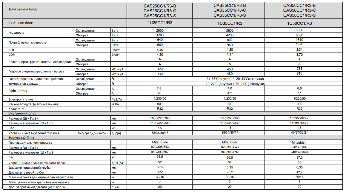 Casarte CAS35CC1/R3-C/1U35CC1/R3 – до 35 м².