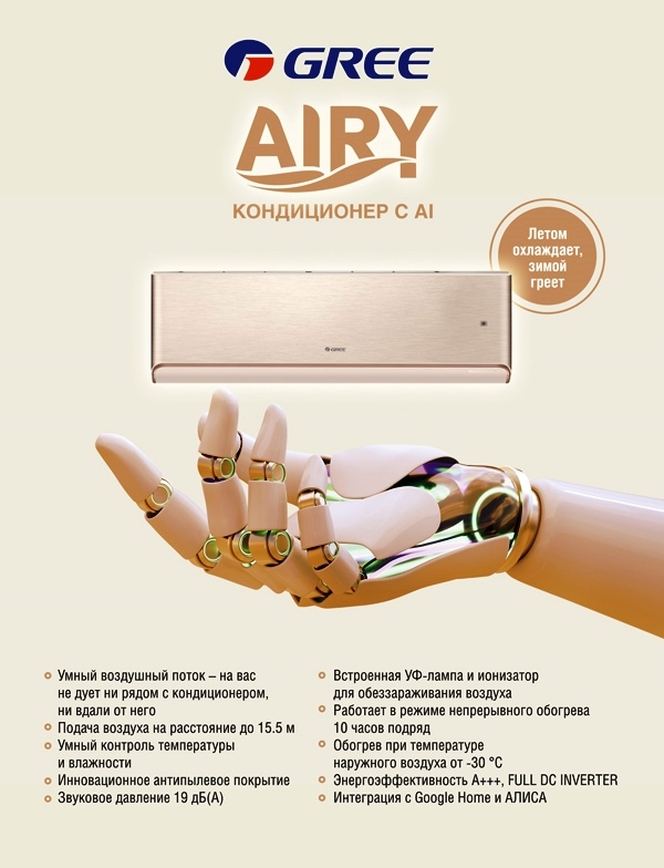 Функции и режимы работы сплит-систем Gree Airy Inverter Champagne