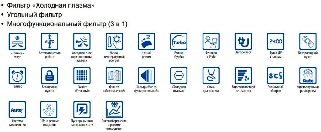 4 базовых режима работы Охлаждение-Осушение-Вентиляция-Обогрев.