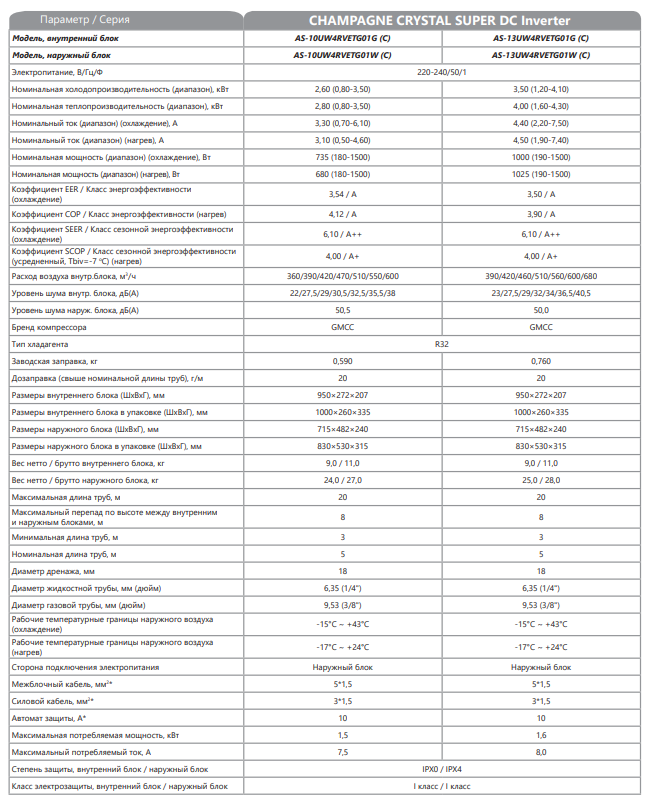 Технические характеристики Hisense CHAMPAGNE CRYSTAL SUPER DC Inverter