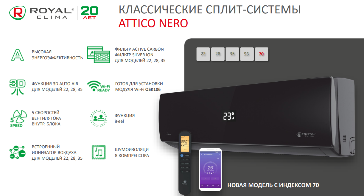 Основные преимущества сплит-систем Royal Clima серии ATTICA NERO