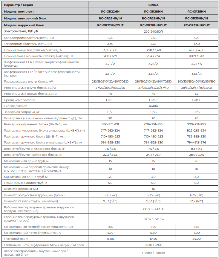 Grida, новейшая серия неинверторных сплит-систем от Royal Clima, представляет собой кондиционер, представленный в 2023 году в качестве охлаждающего устройства начального уровня. Внешний вид внутреннего блока вызывает в памяти классический дизайн в контексте современной тенденции к представлению нового поколения кондиционеров. Строгие и правильные линии настенного шкафа не ставят под сомнение традиции компании, проверенные не только временем, но и многочисленными рекомендациями потребителей. Однако в дизайне передней панели используются изгибы, характерные только для этой серии. В целом, линии прямые, с небольшим количеством плоских краевых поверхностей, а передняя и верхняя поверхности также заметно плоские. Примечательно, что в отличие от многих других серий, дисплей расположен на правом краю, а не в центре.