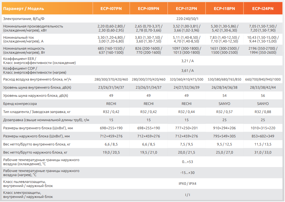 Технические характеристики сплит-систем Ultima Comfort Eclipse Inverter 2026
